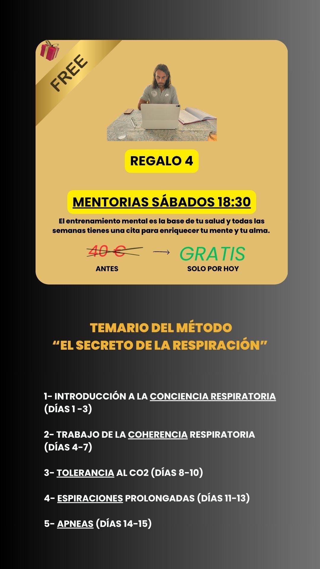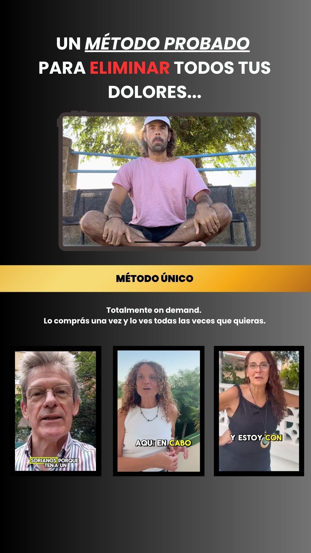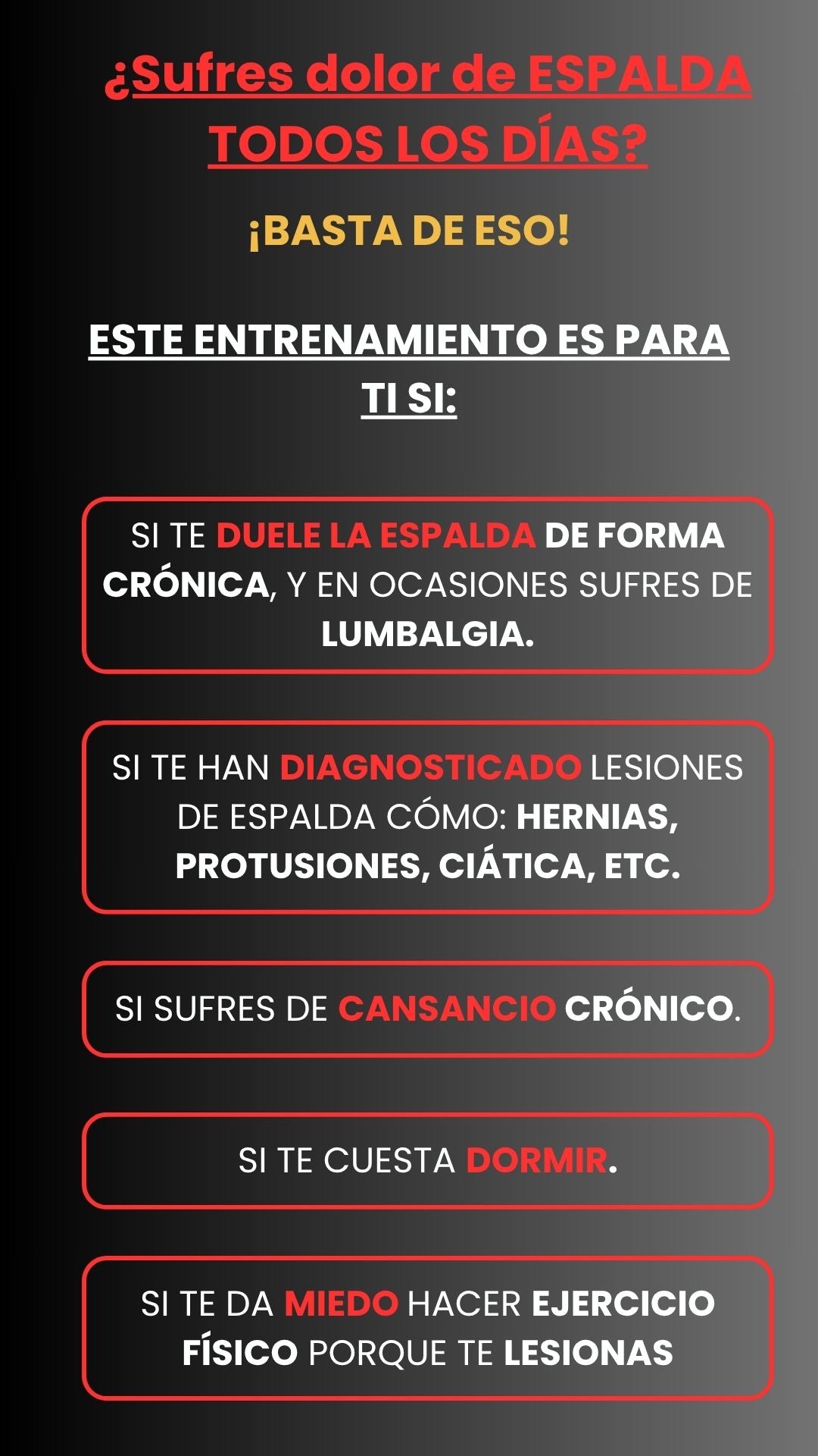 Es un programa DE ENTRENAMIENTO fácil y guiado paso a paso que te enseña técnicas de respiración conscientes para eliminar tus dolores de espalda , contracturas y fatiga crónica.